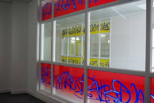mmm, I can see this ending badly! It’s hard to do any changes in situ, and the ‘cold’ paints (that you don’t have to fire) are not that strong of a colour when put on top of coloured glass. What’s likely to happen is that the green will influence the colour of the cold paint and dominate still. It’s also hard to apply these paints smoothly without streaks on a workbench, let alone vertically in situ.