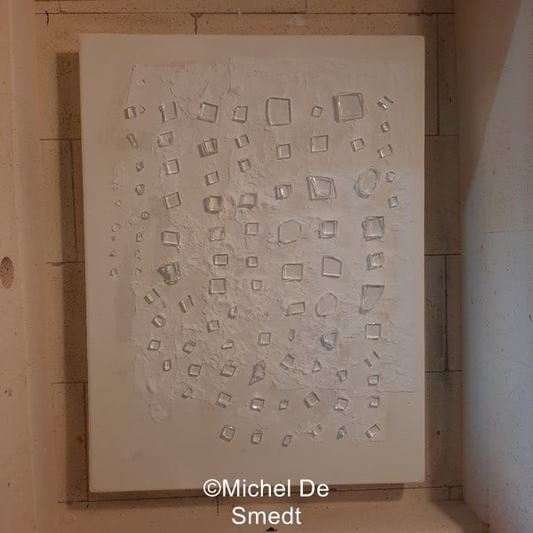 1) I enjoyed Michel de Smedt’s work. How are the gem pieces held together? I’m guessing each piece is foiled, and the spaces in between are filled with solder that is darkened by patina.