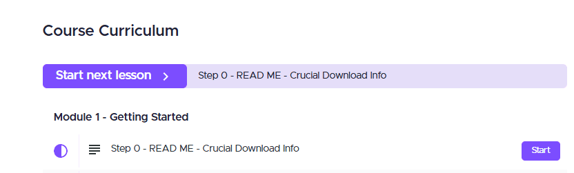 - I don’t see a Step 0 in my class – All classes have a READ ME section at the top. In some courses READ ME is inside Module 1, in others it’s right at the top.