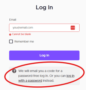 - Log in with your username and choose if you want a one time code sent to your email address or if you prefer to use your password.