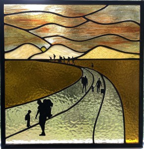 Hi Milly, oh my goodness how talented are your students and what wonderful skill education they must receive from you! I am fascinated that this can be done on line.. I have a question about one of the pieces.. I can’t enlarge enough with clarity to see how it is done! Top right hand piece of the far off landscape.. the effect of the variety of textures in plants, geology etc all done by colour and glass orientation.. is it cut and glued to a backing? I cannot make out either the use of lead came or copper foil! If so the cutting is to perfection.. I live in Australia and this is our country side! Please pass on my congratulations to your students.. magnificent. AC South Australia.