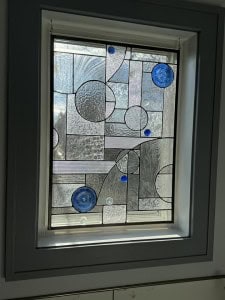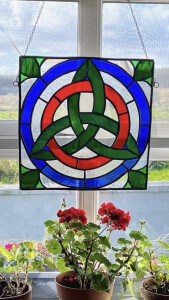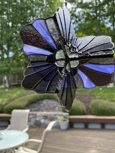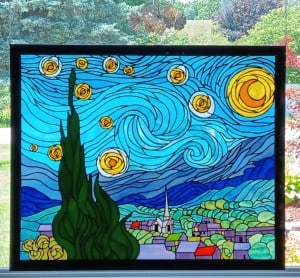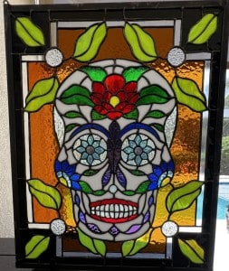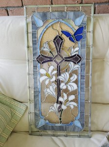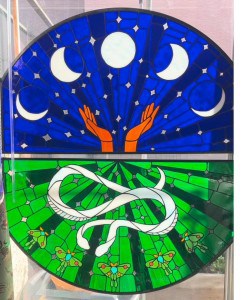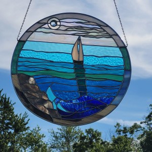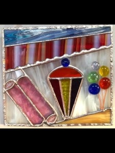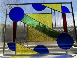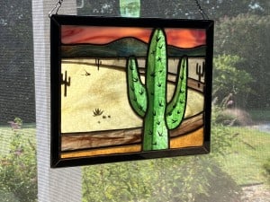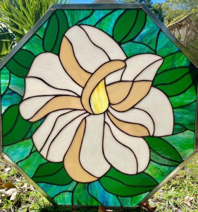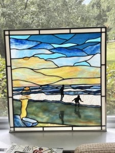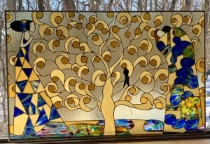 Wow. Ann Hartman. Unbelievably creative! I am a painter as well as a stained glass learner. Your choice of glass, colors and textures, and arrangement is like an oil painting. I can’t exactly tell from the picture, but it looks like it’s a mosaic rather than foiled, right? I’d love to know how you put this together! Incredibly beautiful. I’m a fan!